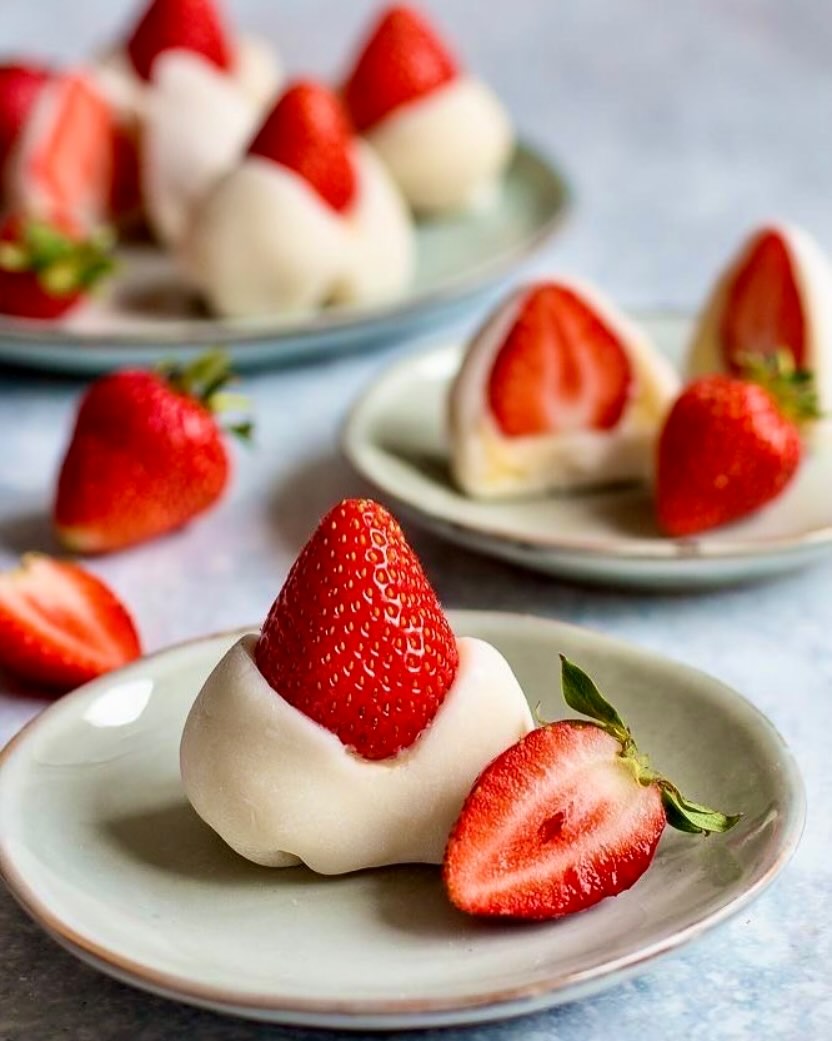 商品ラインナップは、苺大福(全7種)をはじめ、みたらし団子、わらび餅、笹団子、サーターアンダギー、季節ものなど多岐にわたります。販売場所はイオンなどのショッピングモール、スーパー、イベント会場など、週ごとに変わります。